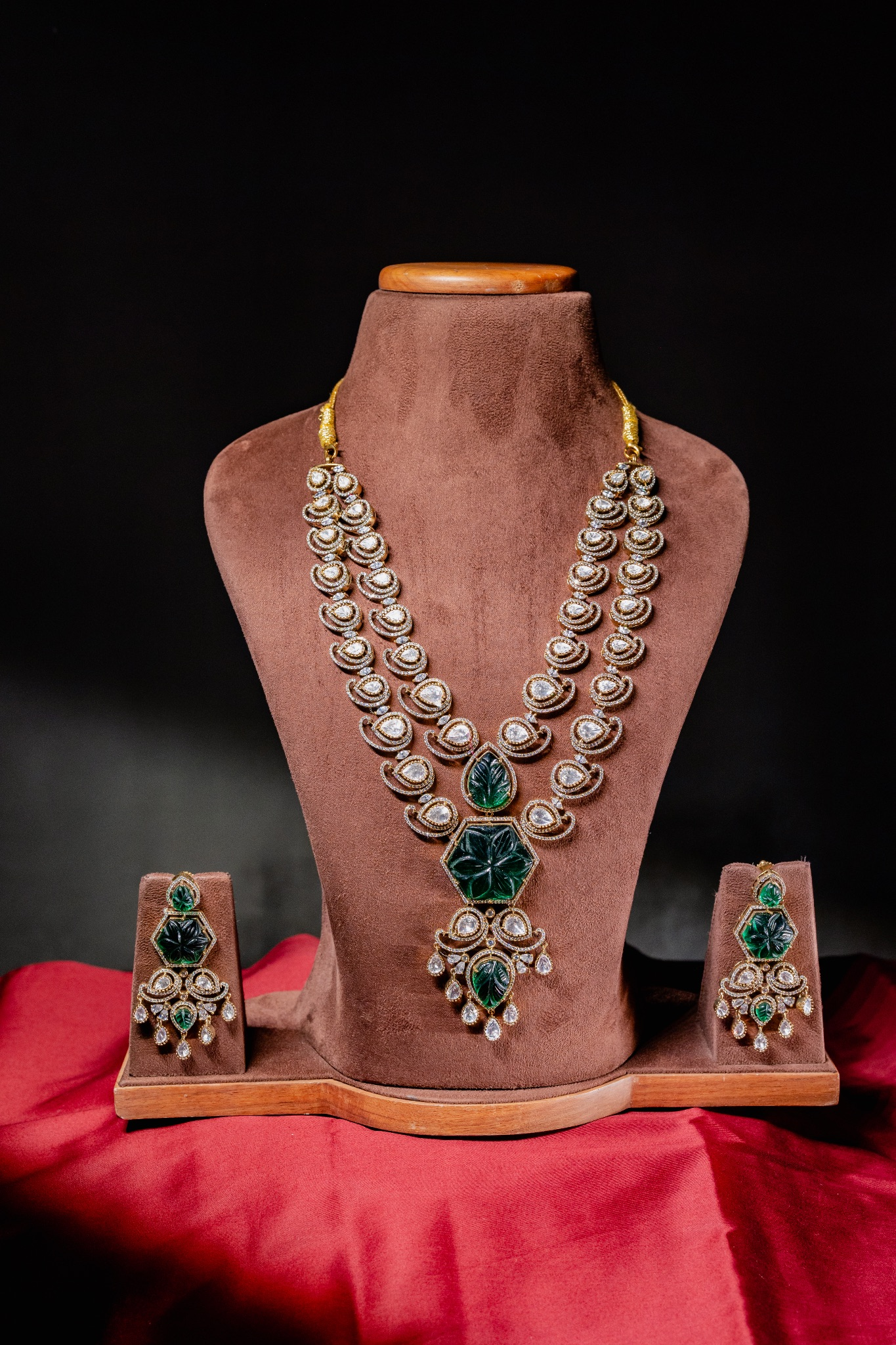 This Emerald Cascade Necklace features a sophisticated arrangement of premium emerald gemstones set in a graduated design that creates a stunning waterfall effect. The precision-cut emeralds exhibit exceptional clarity and color depth, complemented by meticulous metalwork that enhances their natural brilliance. Expertly balanced for comfortable wear, this statement piece offers versatile elegance for both formal occasions and elevated everyday styling. The necklace represents superior craftsmanship with attention to secure settings and refined finishing details.